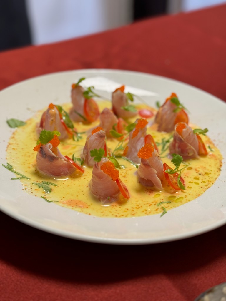 Market fish, thinly sliced. Steeped in lime juice and aji. Chef Miguel will suggests adding: sesame, soy sauce, crisp quinoa, truffle oil, wasabi mayonnaise and shichimi. If Maguro tuna is available, Chef Miguel will suggest thicker slices and torch the plate with fire.