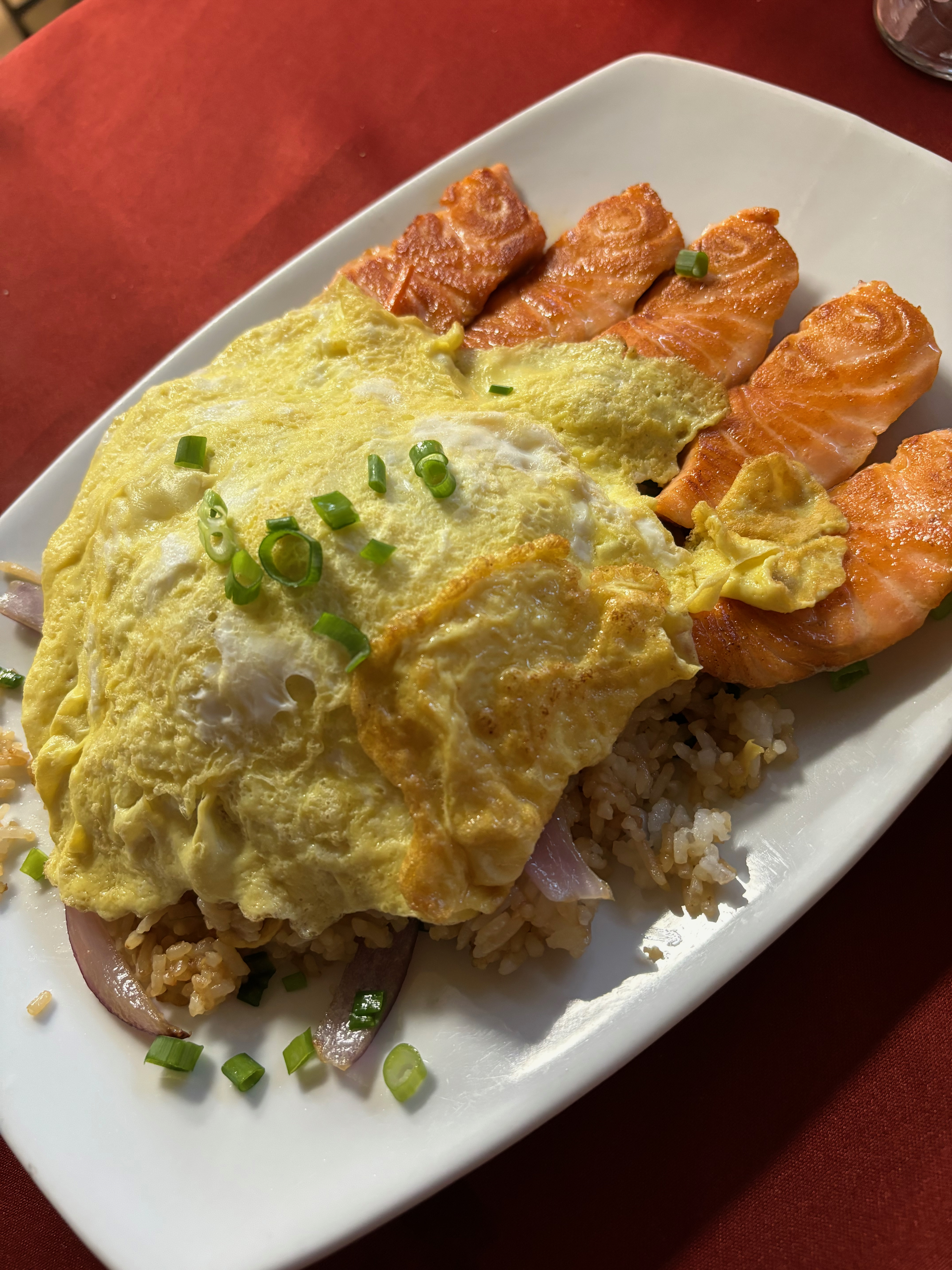 Peru, chaufa is the alphabetical phonetics of the Chinese chao fan, or fried rice. My favorite is with salmon, and of course, it can be done with any meat of your dreams or tofu