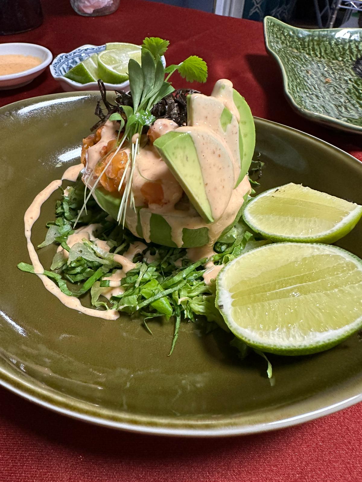 Stuffed avocado salad, and it can very well be the vegan version of deviled eggs
