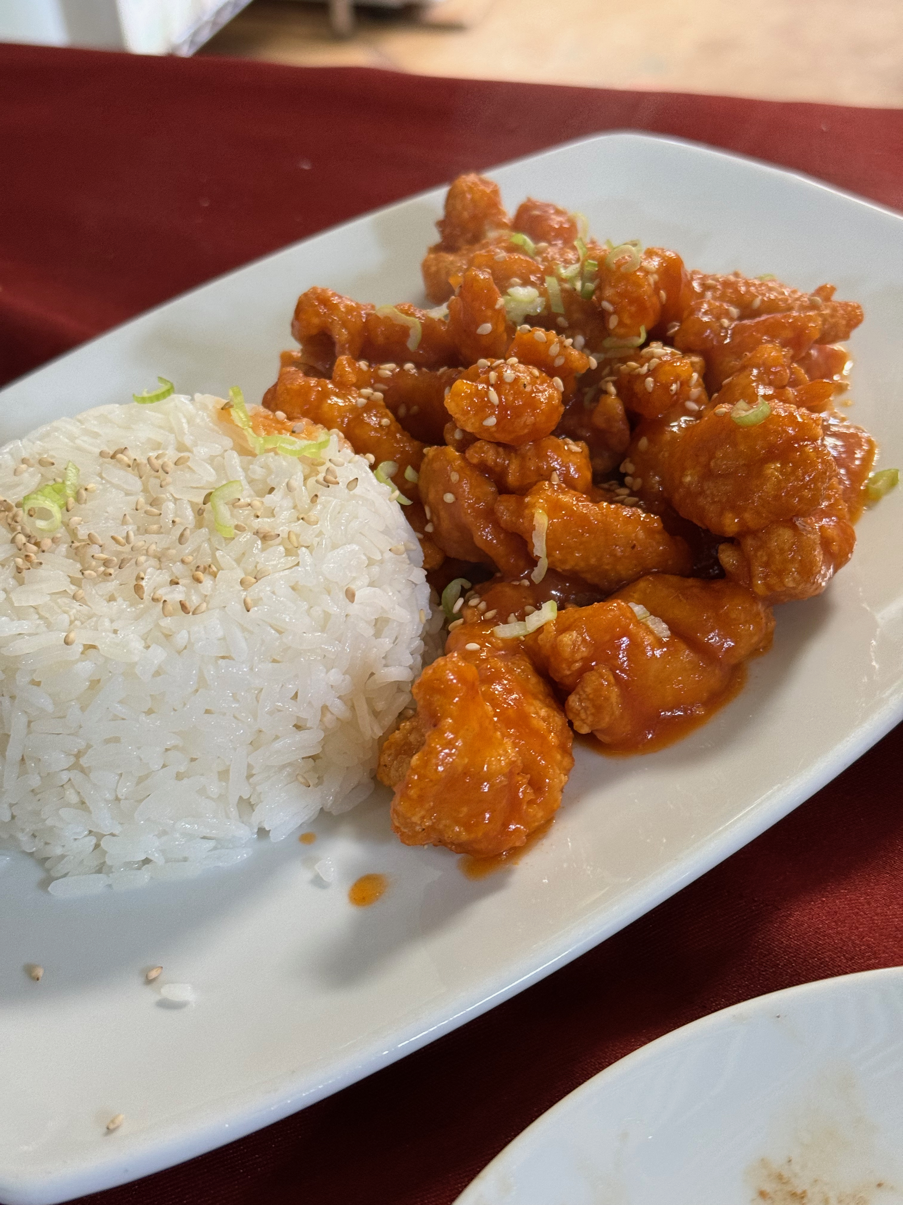 Ayer probe Tallarin con Pollo. Me hizo viajar al pasado a los dias de mi abuela. QUE AUTENTICO. Este plato proviene de Italia, de la salsa “Ragu” la cual contiene tomates y zanahorias. Actualmente es un Ragu de Zanahorias como se hace en Italia, con mas zanahorias que tomates. En USA, el ragu se hace solamente de tomates. Tambien probe el Pollo Tipakay, un plato Chino de Lima, que nunca falta. Son chicharrones de pollo en chun~o, con salsa agridulce.